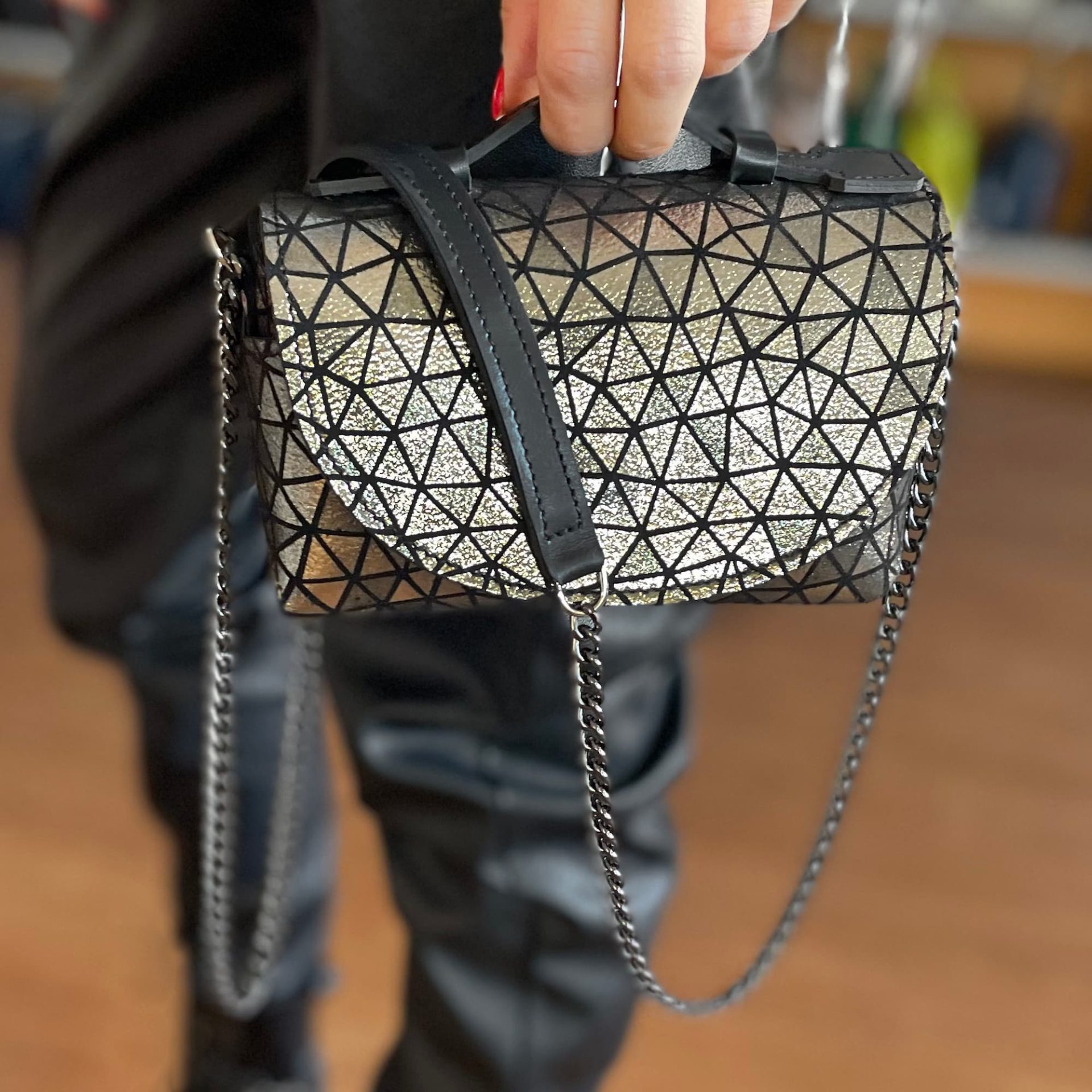A different take to a night out accessory. Simple box bag with sophisticated black and silver leather. Can’t go wrong with it for any appearance.